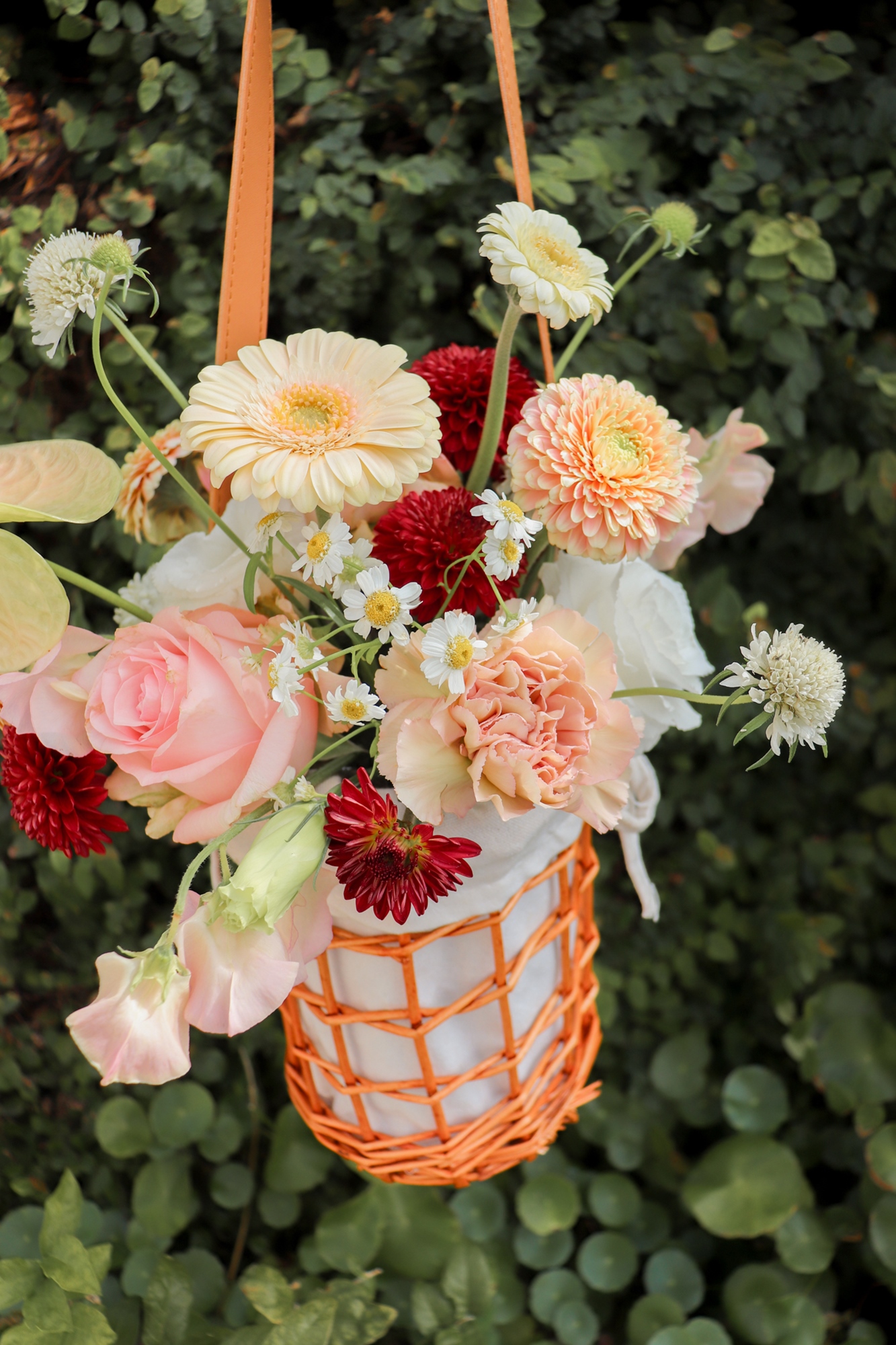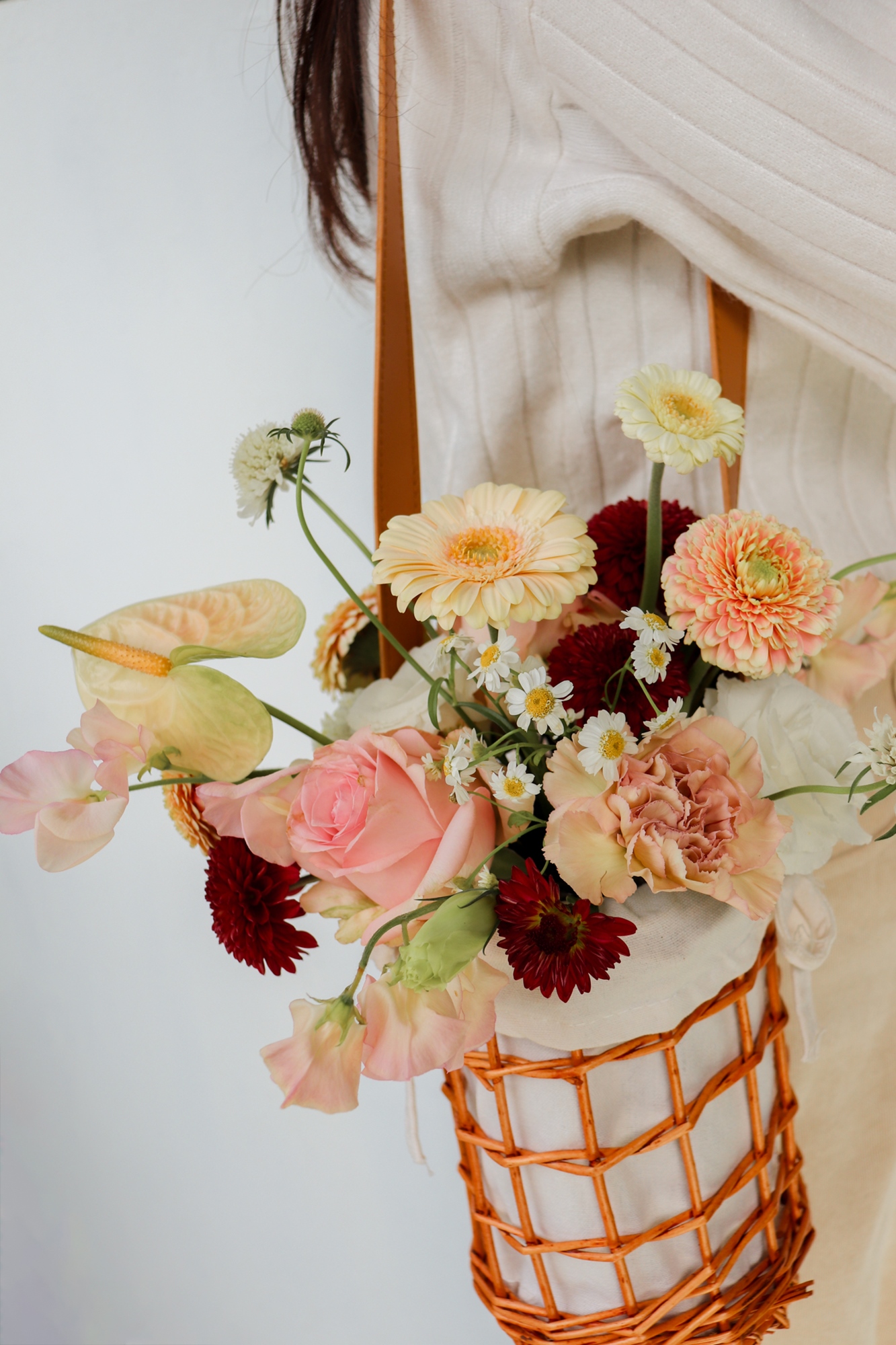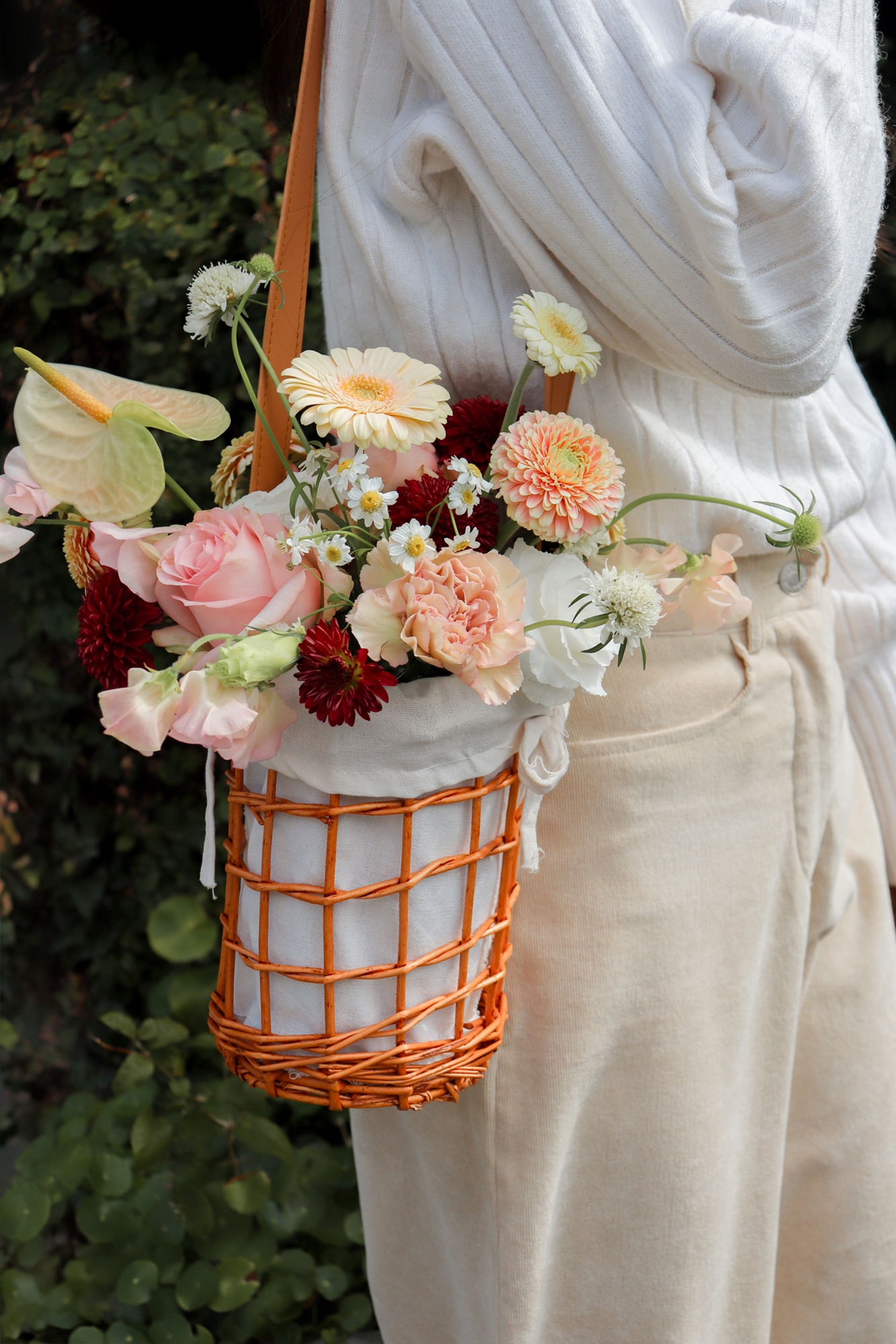 打造一款既能揹著走、又充滿藝術氣息的「鮮花背帶竹籃」