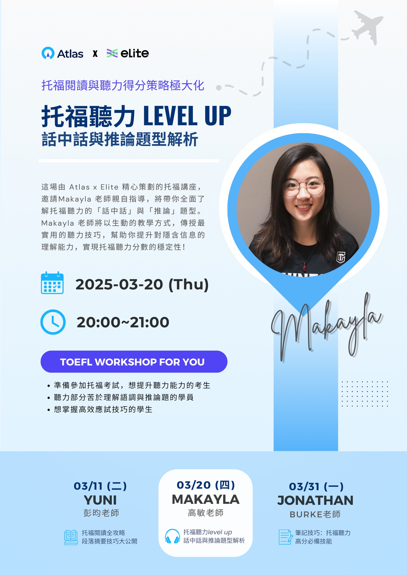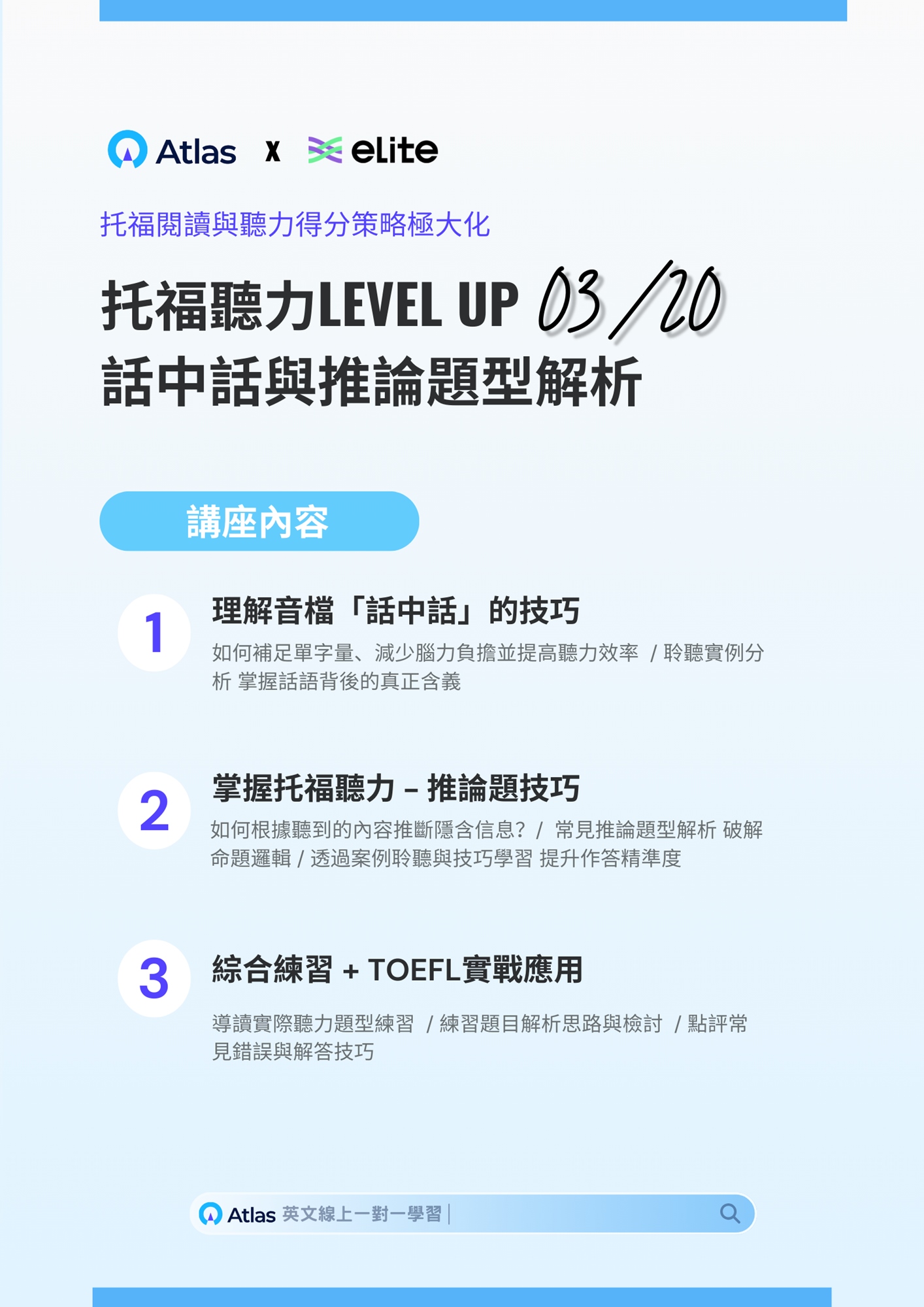 托福講座主題與三大場次資訊 – Atlas x Elite