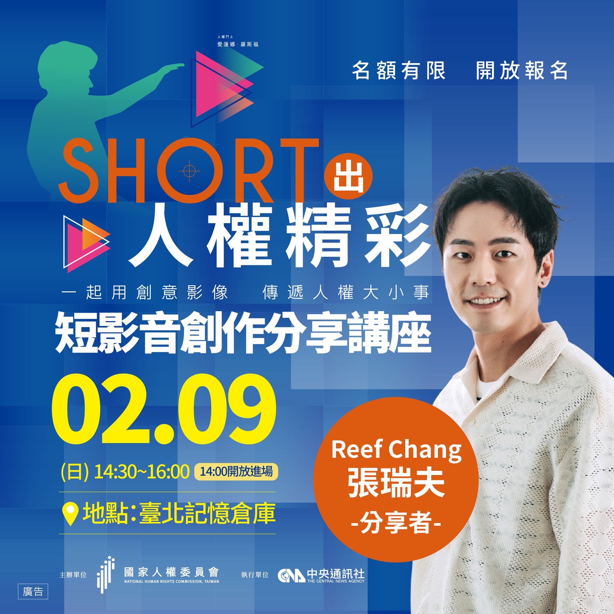 國家人權委員會正在辦理「Short出人權精彩-人權短影音創作競賽」,盼可以促進大眾關心及從生活周遭了解人權議題,參加者可以透過影像等多媒體作品,拍出具有創意的影像作品。