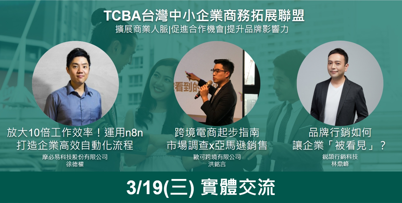 🎉【TCBA台灣中小企業商務拓展聯盟】3/19台北場實體交流——拓展商機、擴大人脈最佳時機!