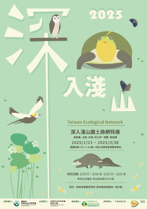 這場展覽將帶你走進淺山、平原、濕地與海岸的生態棲地,認識它們如何串連起來,成為守護生物多樣性的關鍵,也讓我們的生活環境更加美好。