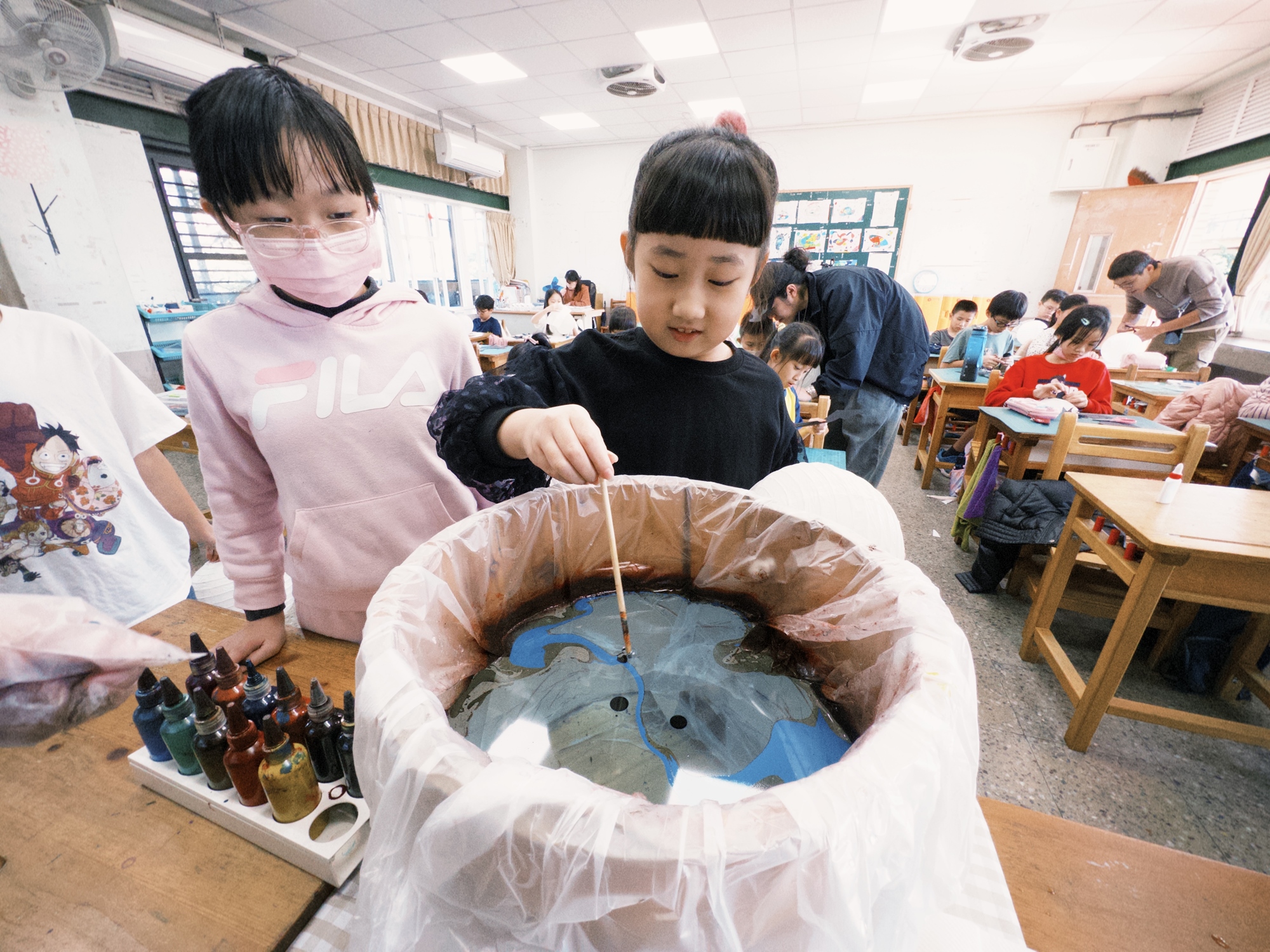 step1. 將特殊漆料滴入水面,輕輕攪動水面讓漆料在水面上形成紋路