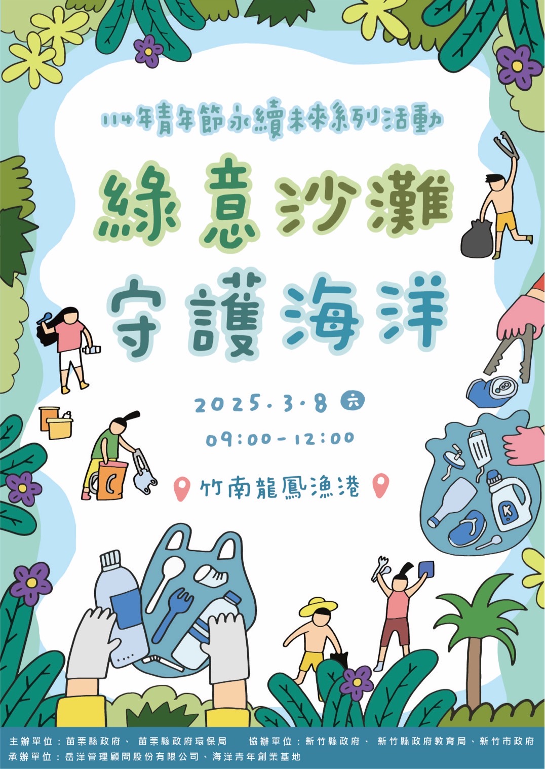 💪🌿 3月8日,帶上你的夥伴,一起來竹南龍鳳漁港與海洋基地,參加這場結合環保、趣味、音樂與美食的超狂淨灘活動!
