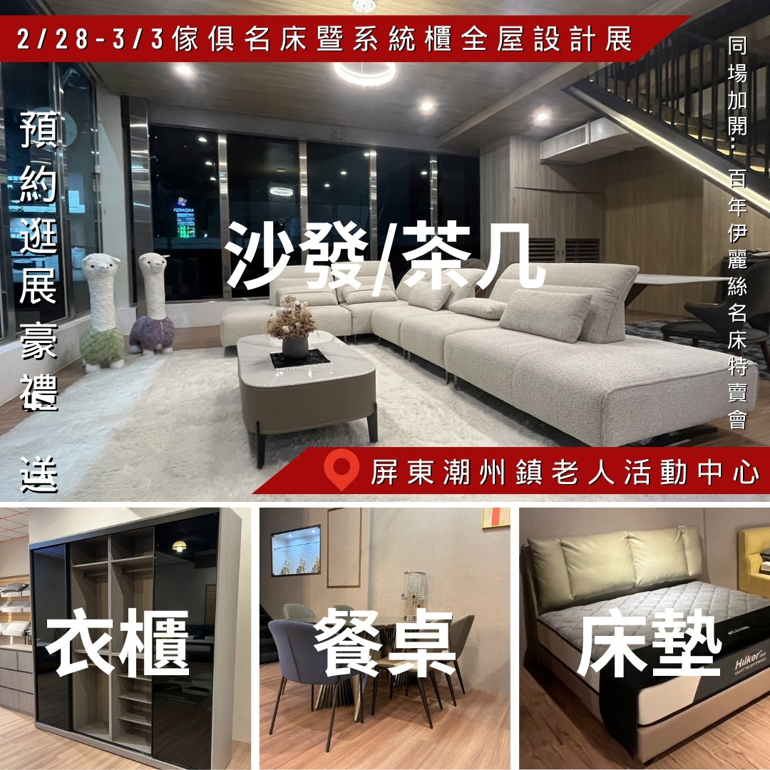 隨著生活美學的提升,家具與居家設計已不只是實用需求,更是展現個人品味與生活態度的重要元素。2025 「屏東開春傢俱名床暨系統櫃全屋設計展」 將於 2月28日(五)至3月3日(一) 在 屏東潮州鎮老人活動中心(屏東縣潮州鎮清水南路17-2號) 盛大舉行。本次展會特別精選 百大流行居家風格,涵蓋北歐簡約、現代輕奢、日式無印、美式鄉村等多種設計趨勢,讓參觀者能一次掌握最新潮流,為自己的居家空間帶來嶄新靈感。此外,我們還邀請到 美國百年品牌「伊麗絲名床」 舉辦特賣會,讓台灣消費者能夠親身體驗來自國際頂級床墊品牌的舒適與支撐,感受奢華睡眠的極致享受。
