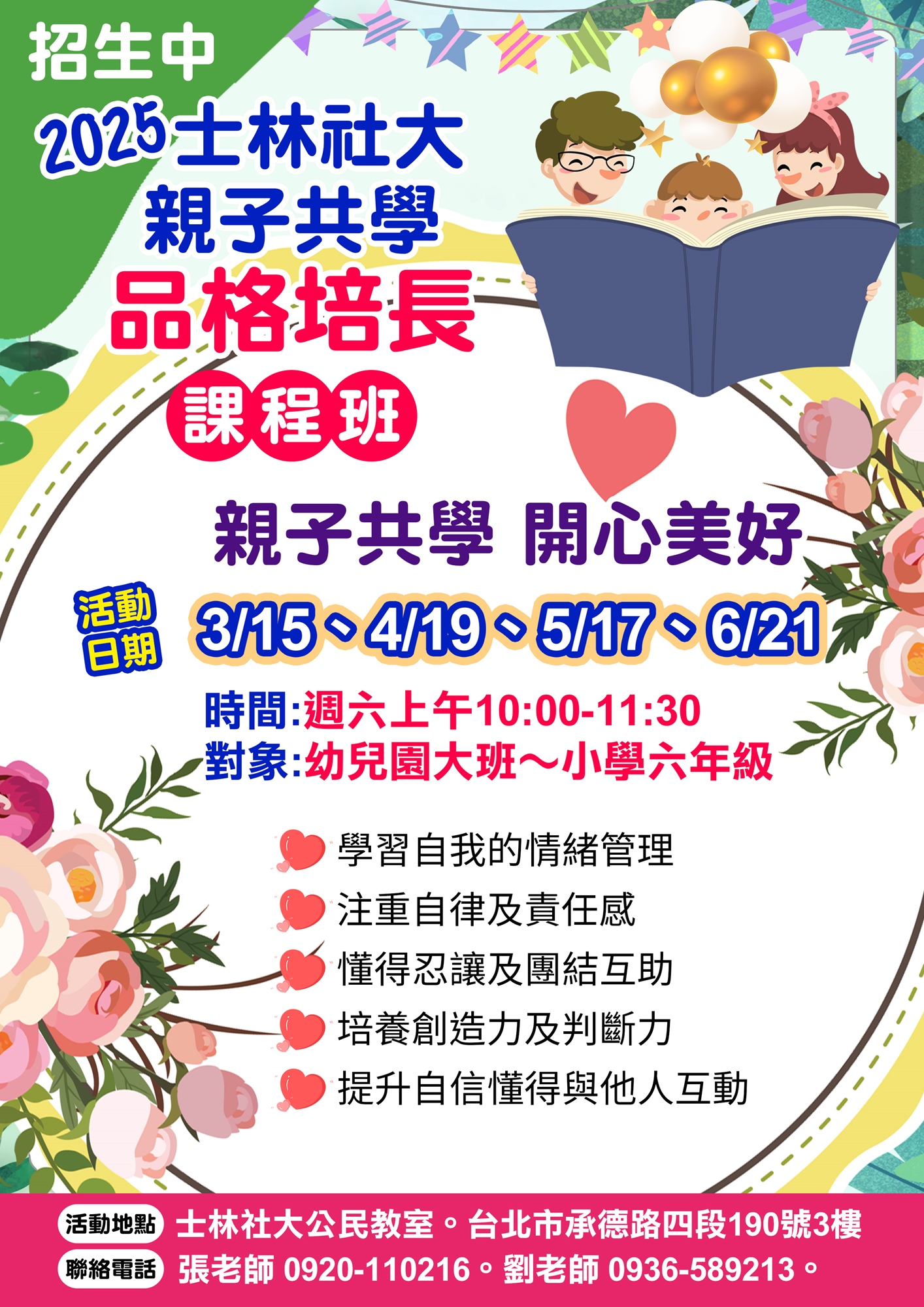 聯絡電話:士林社大執秘 黃先生 0921-198640