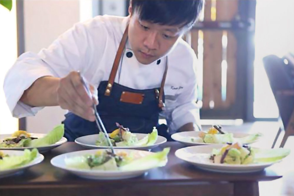 亞都麗緻飯店主廚,現任高職餐旅科教師,擁有豐富飯店經驗。擅長創意西餐、中點小吃、異國料理及南洋料理。對教育充滿熱情和堅持,致力於將自己所學的飯店經驗與西餐技術傳授給學生。曾多次帶領學生參加烹飪比賽獲獎,不僅在校內投入教學工作,也多次受邀至餐飲產業工會等擔任指導教師,分享實務經驗與烹飪技巧。憑藉深厚的烹飪技藝和豐富的教學經歷,榮獲「十大傑出觀光餐旅名師」的殊榮!