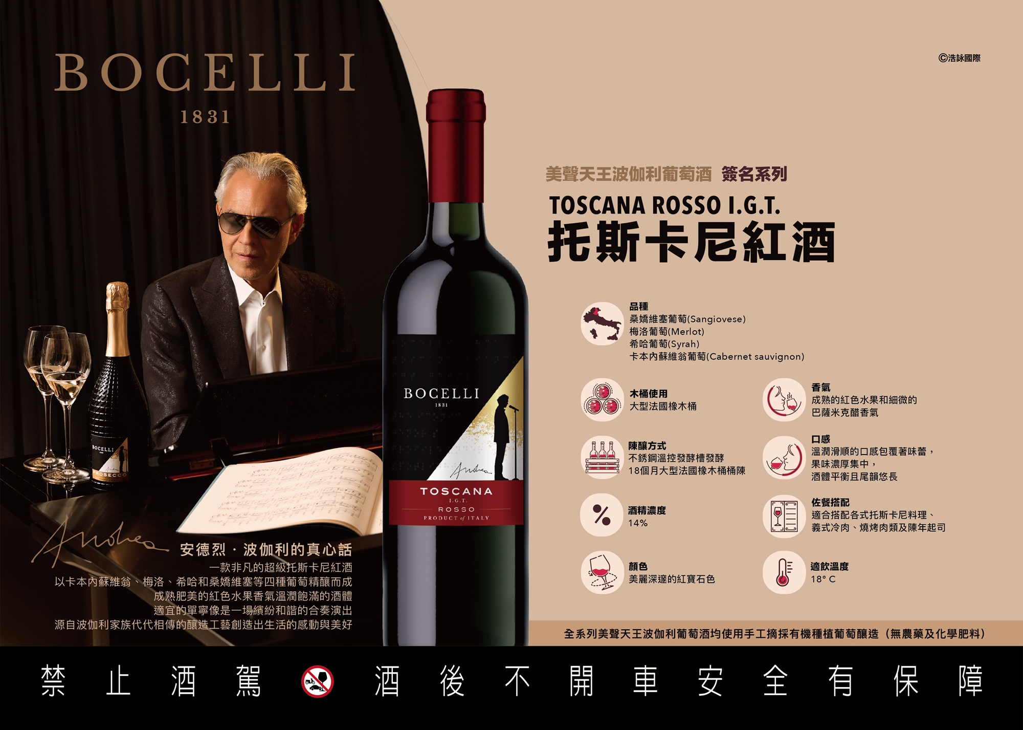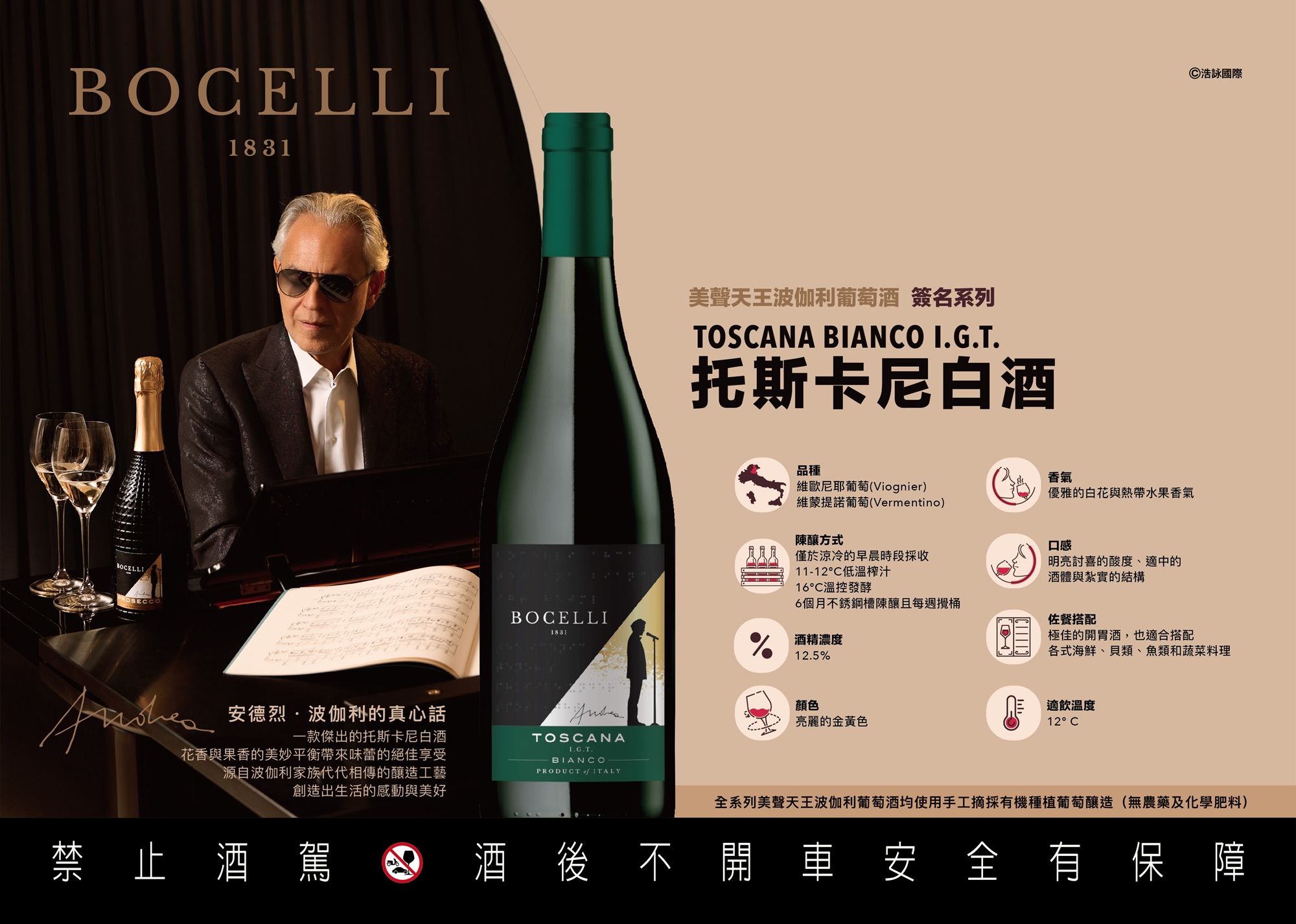 ▎品飲酒款 「美聲天王波伽利」葡萄酒簽名系列