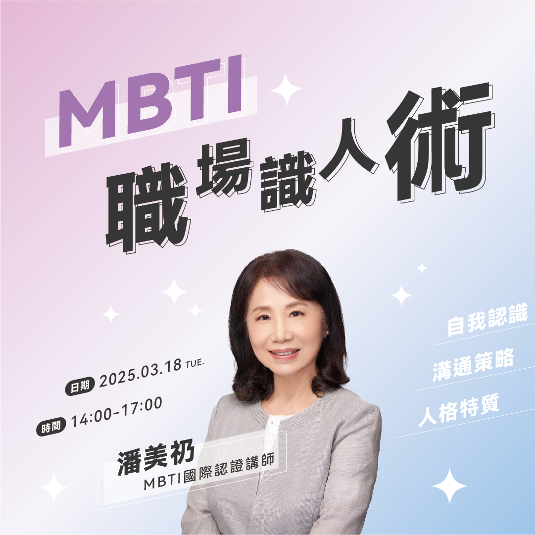 在專業講師的指導下,這場工作坊將帶你從 MBTI 的核心理論出發,認識自己的人格特質與優勢,並了解如何將其應用於日常生活與職場中。你將不再為模糊的結果感到困惑,而是透過科學化的指導,發現真正屬於自己的類型與潛力!