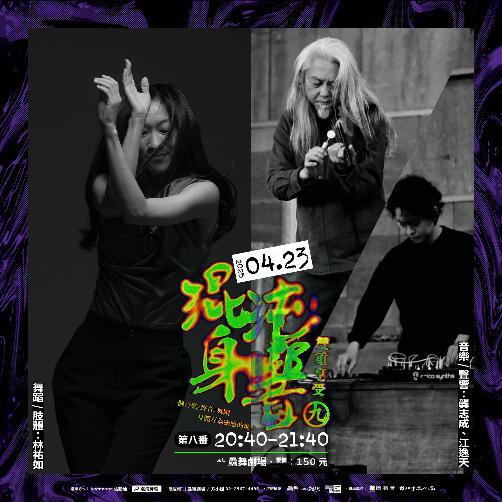 2025年的《混沌身響9》持續策劃升級的概念,在同一天夜晚推出兩組風格迥異,整季四個夜晚共18位的舞者與音樂人,創造一場視覺與聽覺的盛宴。