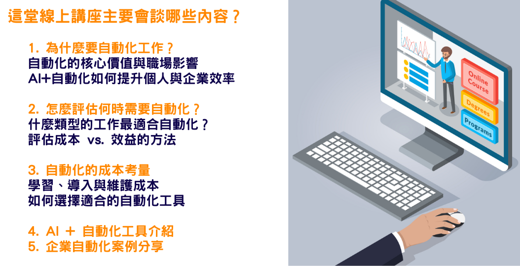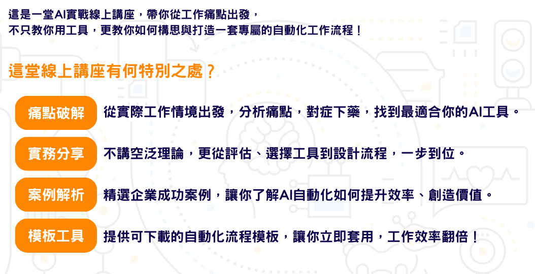 線上報名完成後,課前一週將會Email課程連結給所有學員。