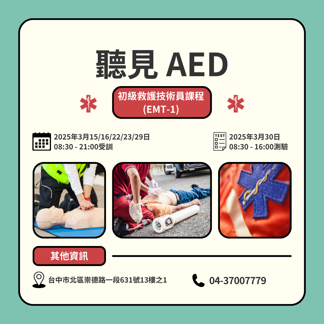 EMT-1課程讓你學會系統化急救技能,從CPR、AED到創傷處理,提升應變力。