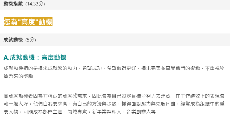 您只需花費5分鐘時間完成測驗,幫助您了解自己真正的驅動因素,透過了解自身動機,找到相對應的激勵因子,讓您減少倦怠與挫折感,使工作與生活更有意義透過動機測驗能夠幫助您了解自己真正的驅動因素,透過了解自身動機,找到相對應的激勵因子,讓您減少倦怠與挫折感,使工作與生活更有意義