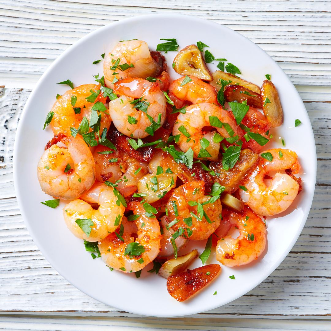 2.西班牙蒜蝦: 蝦、蒜頭、洋蔥、橄欖油。