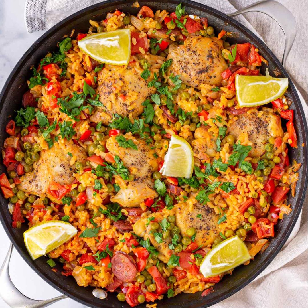 1.西班牙辣香腸雞肉飯:西班牙香腸、雞腿肉、Bomba Rice、番茄、甜椒、檸檬、洋蔥、蒜頭、番紅花。