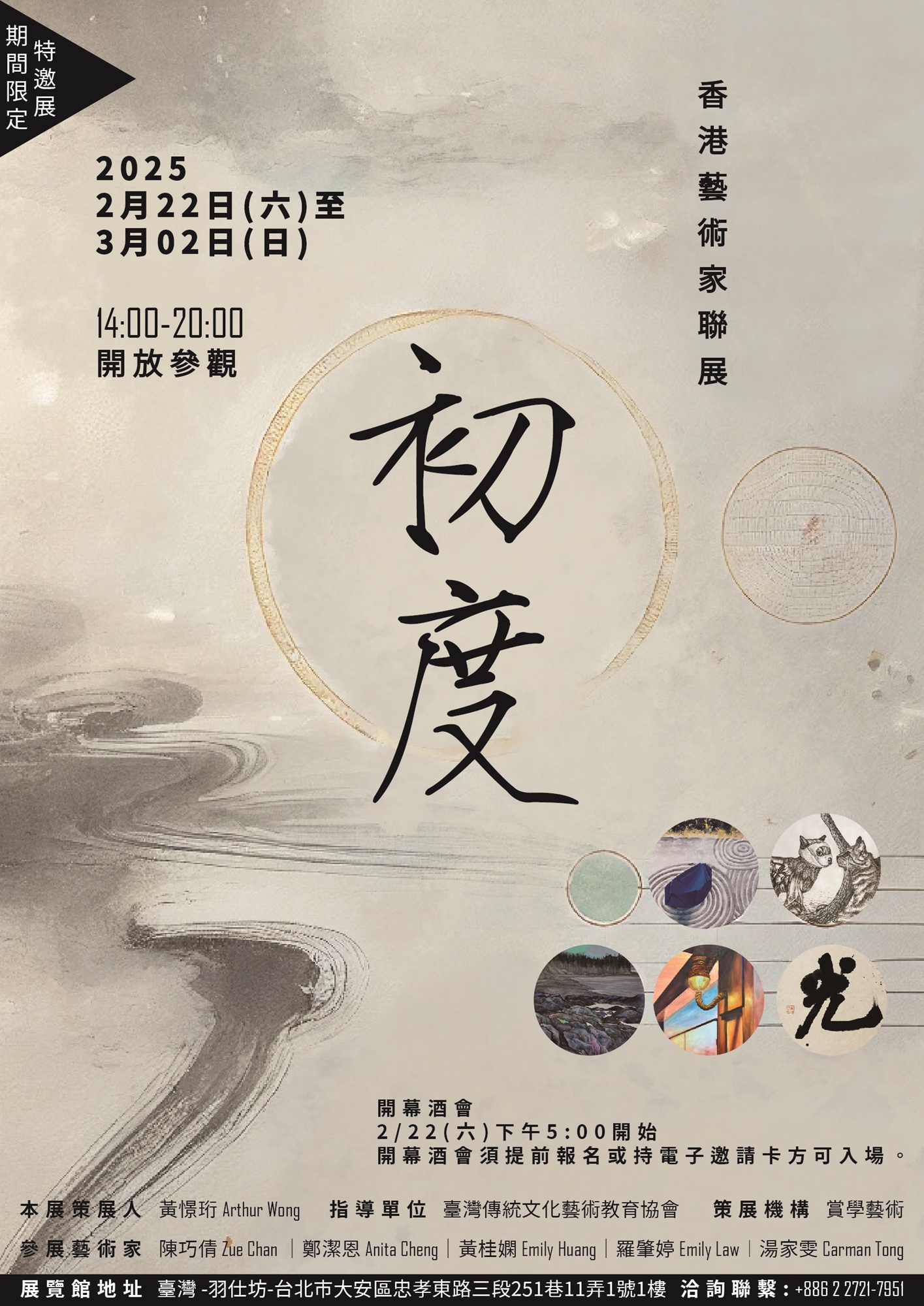 在這片充滿文化交融的土地上,策展人黃憬珩將帶領五位香港藝術家,首次將他們的創作帶到台灣展出,這不僅是一場展覽,更是一場心靈的對話。「初度」象徵著他們在台北的首次亮相,帶來充滿香江風情的藝術盛宴。藝術家們以獨特視角,將香港的都市節奏與文化交融融入作品中,展現現代美學的結合。無論是細膩的城市光影、抽象情感,還是書法的文字之美,這些多元風格讓台灣的朋友們得以近距離感受香港藝術的獨特魅力,體會這座城市深邃的靈魂與創作能量。