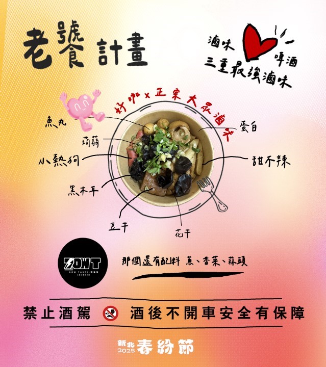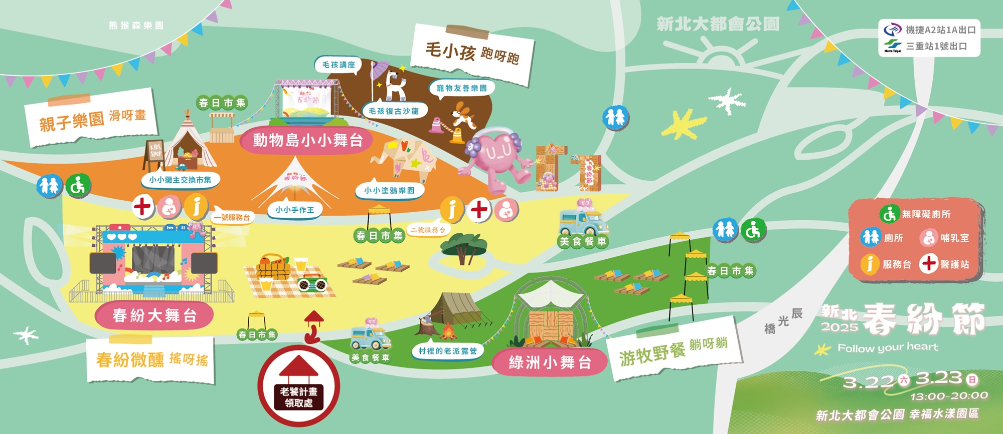 - 2025 新北春紛節為免費入場之活動,此方案為活動限定餐點、紀念品套組,請出示【預購姓名及成功預購信件】至「新北大都會公園 活動現場老饕計畫服務攤位」兌換