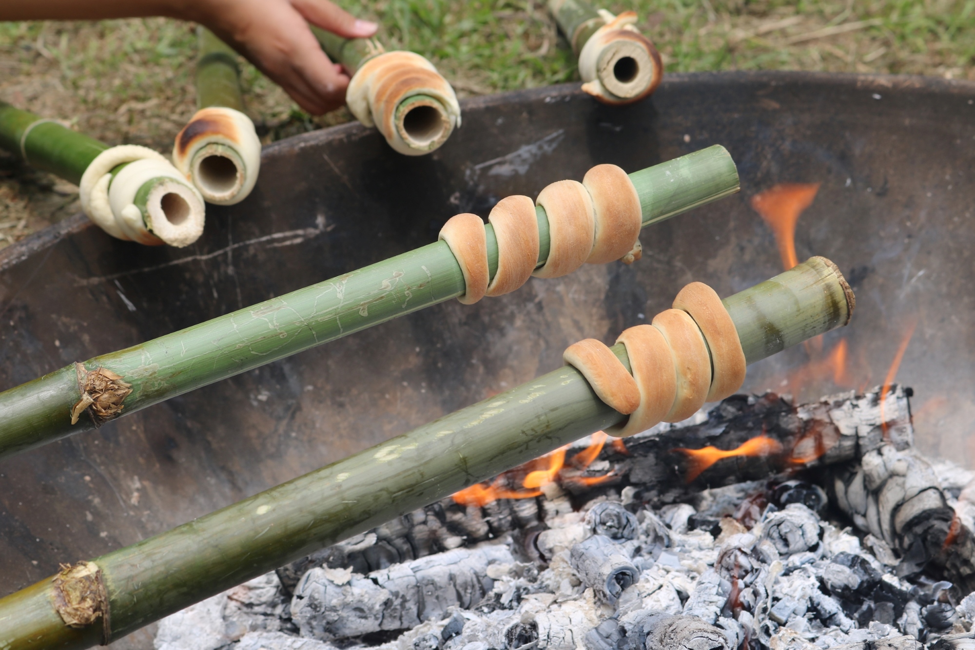 △ 等待美味麵包出爐時,讓我們一邊烘烤酥脆鹹香的竹棍蛇麵包