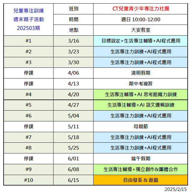 ★訓練教室交通資訊&訓練課程內容詳細介紹&老師介紹...更多內容,請看協會官方網站:https://www.ctpa.org.tw/kids202503club.html