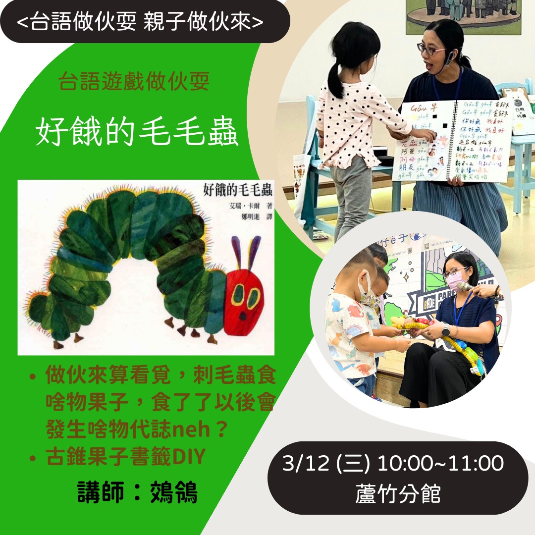 ★活動簡介:這場活潑有趣的台語說故事活動,將帶領孩子們透過生動的故事與互動遊戲,認識各種蔬果的台語名稱與特色。快來參加,一起用台語探索五顏六色的蔬果世界,學習好玩又實用的生活語言吧!