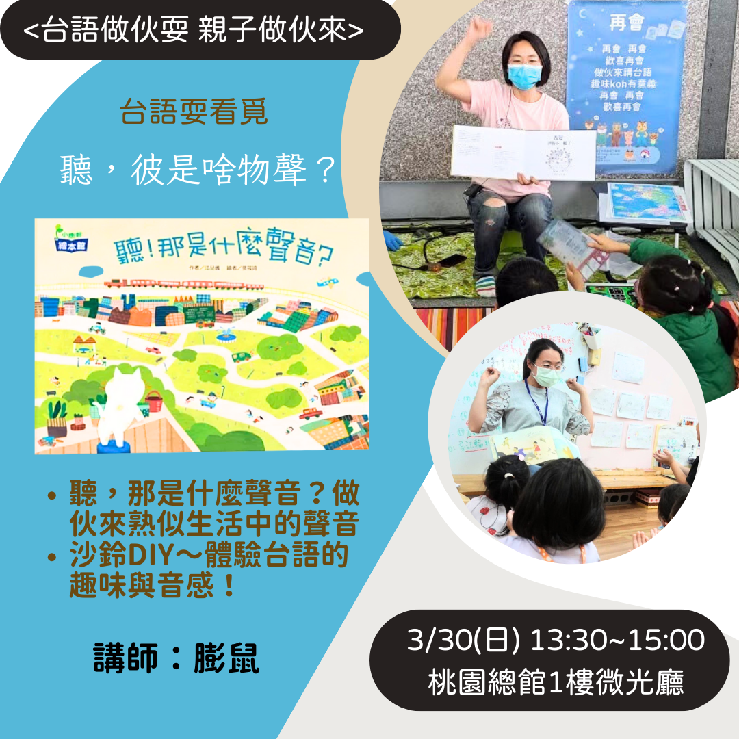 ★活動簡介:本活動使用台語結合說故事、律動遊戲、手指謠等生動有趣的方式,帶孩子用台語認識生活中不同的聲音。親子共做沙鈴~一起唱首歌跳支舞,體驗台語的趣味與音感!