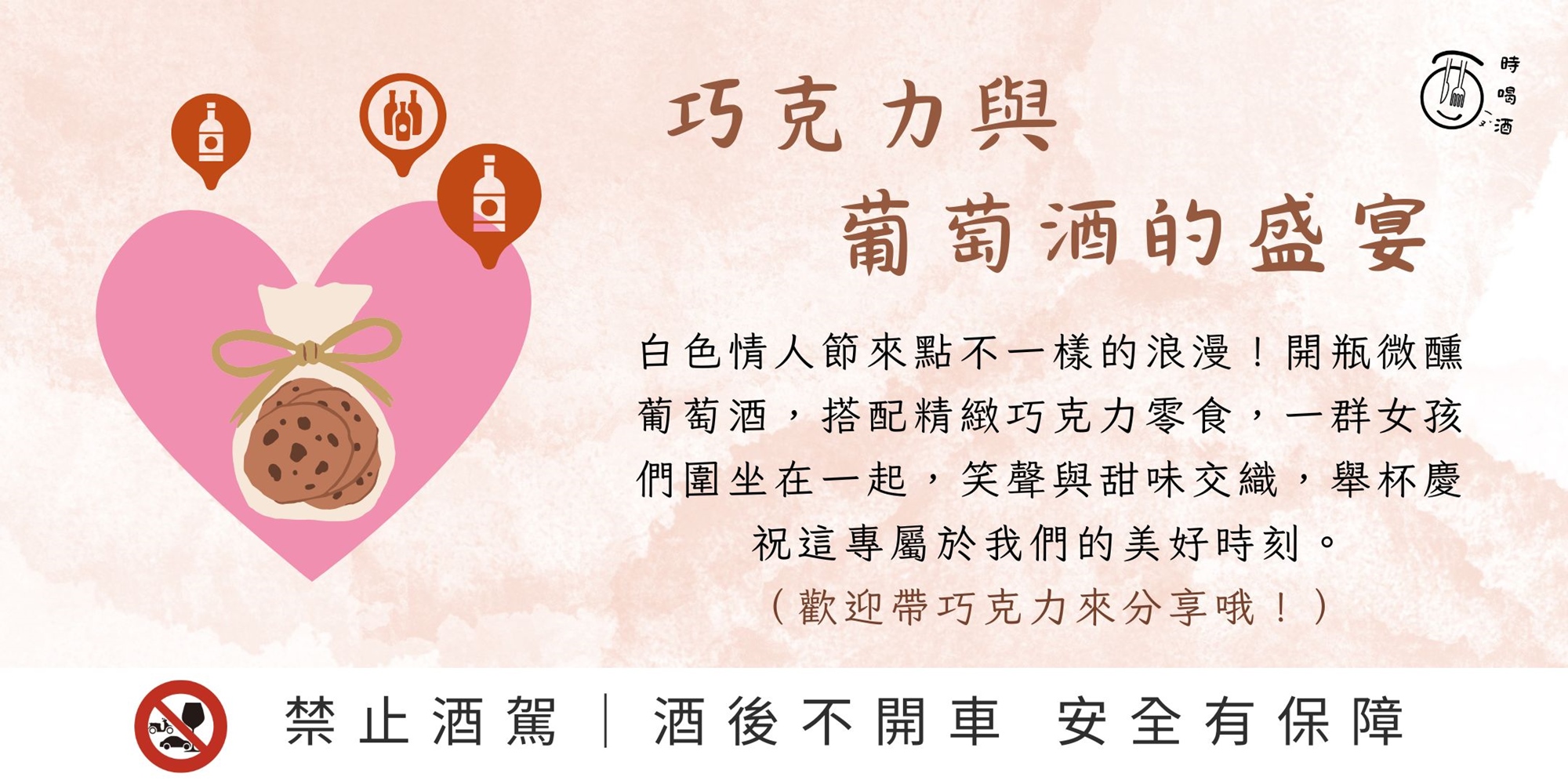 精選葡萄酒搭配巧克力甜點,讓白色情人節這天
