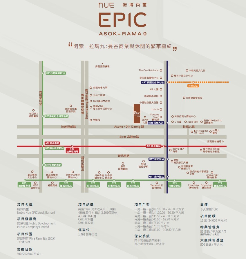✔️目前Rama 9區域的市場價每平方米起跳16萬,而《諾博尚璽 Nue Epic Asok Rama9》僅需14萬起,是曼谷性價比最高的選擇!