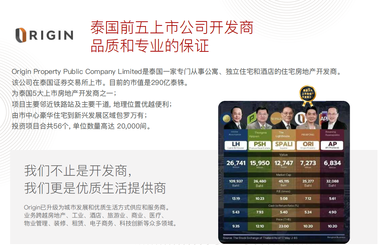 🎈建商背景Origin Property Public Company Limited是一家住宅地產開發商,專門開發泰國的公寓、獨立住宅與飯店