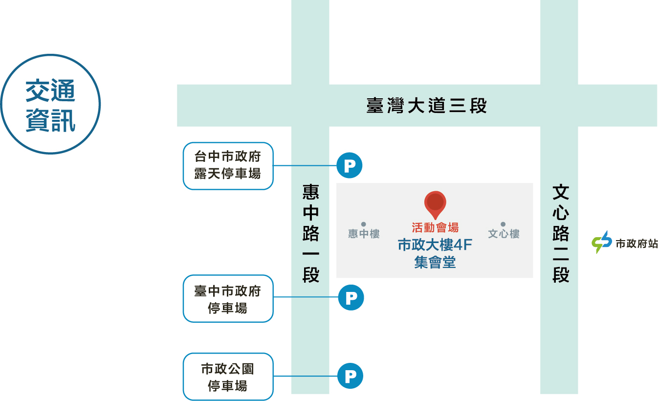 臺中市政府市政大樓4樓集會堂(臺中市西屯區臺灣大道三段99號)