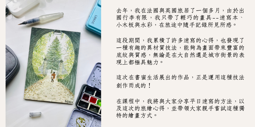 學習如何在旅途中用水彩結合不同媒材,捕捉瞬間靈感,轉化為獨特的插畫作品
