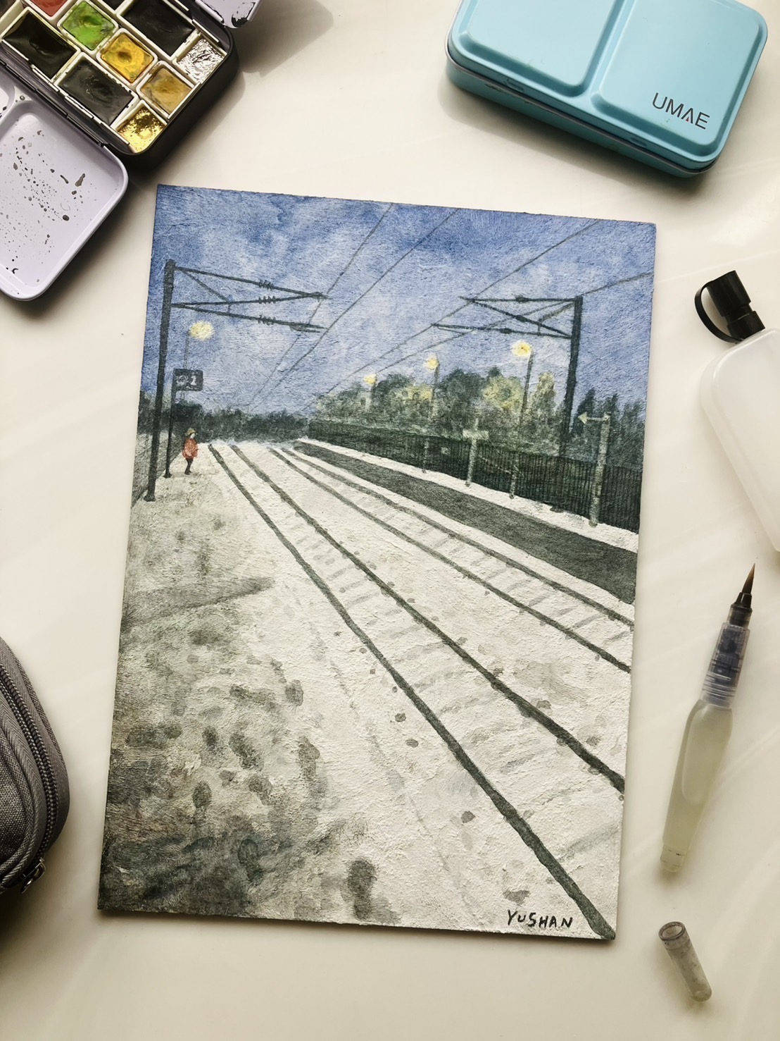 靄靄白雪下的寧靜世界,探索水彩在冷色調與雪景質感上的應用。