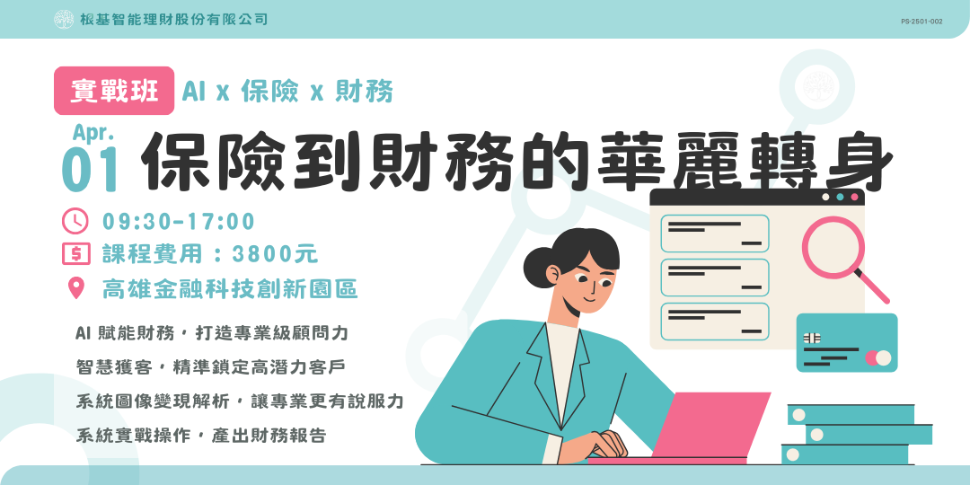 本課程將教你如何運用 AI 工具與財務分析技巧,讓你從單純的保險顧問,轉型為專業級財務顧問,不只提升業績,還能建立長期客戶關係!