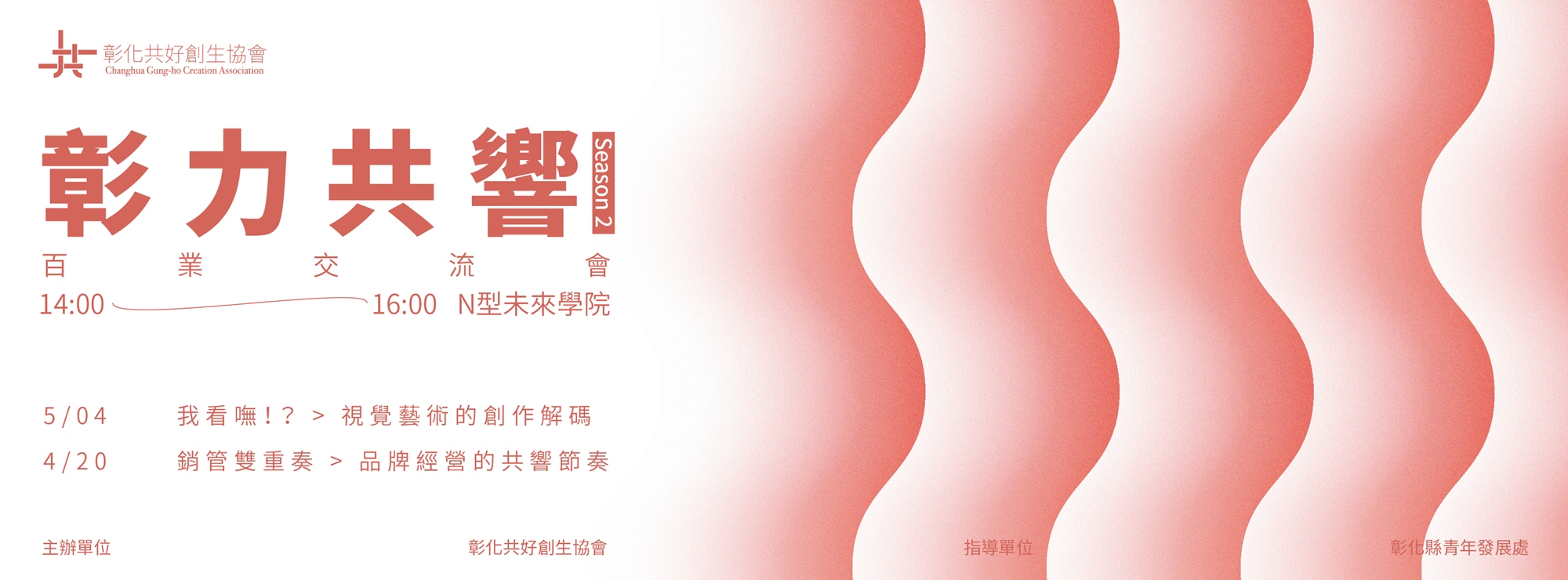 第一季《彰力共響》聚焦於「彰之力」,講者們分享了創業路上的甜蜜與淚水;而第二季,我們將視角轉向各領域的專業人士,邀請他們在 4/20(日)與 5/04(日)帶來兩場講座——