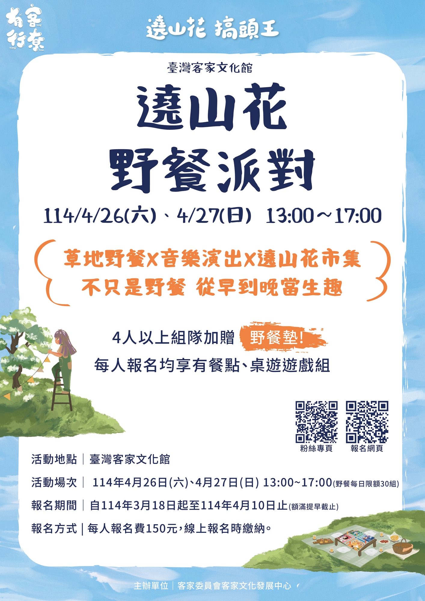 ① 臺灣客家文化館內禁止飲食,將以戶外為主要活動場域,參加者請自備野餐墊。