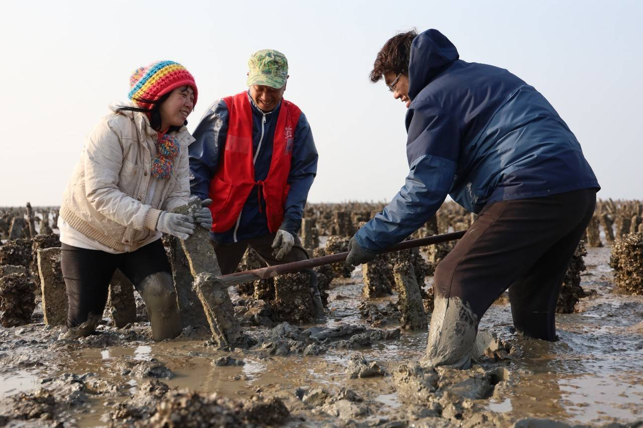 金門的採蚵技術與台灣本島地區截然不同,蚵達人世代傳承獨特的採蚵養殖法,不依賴蚵棚,而是讓蚵苗附著在潮間帶的礁石或人工擺放的石塊上生長。