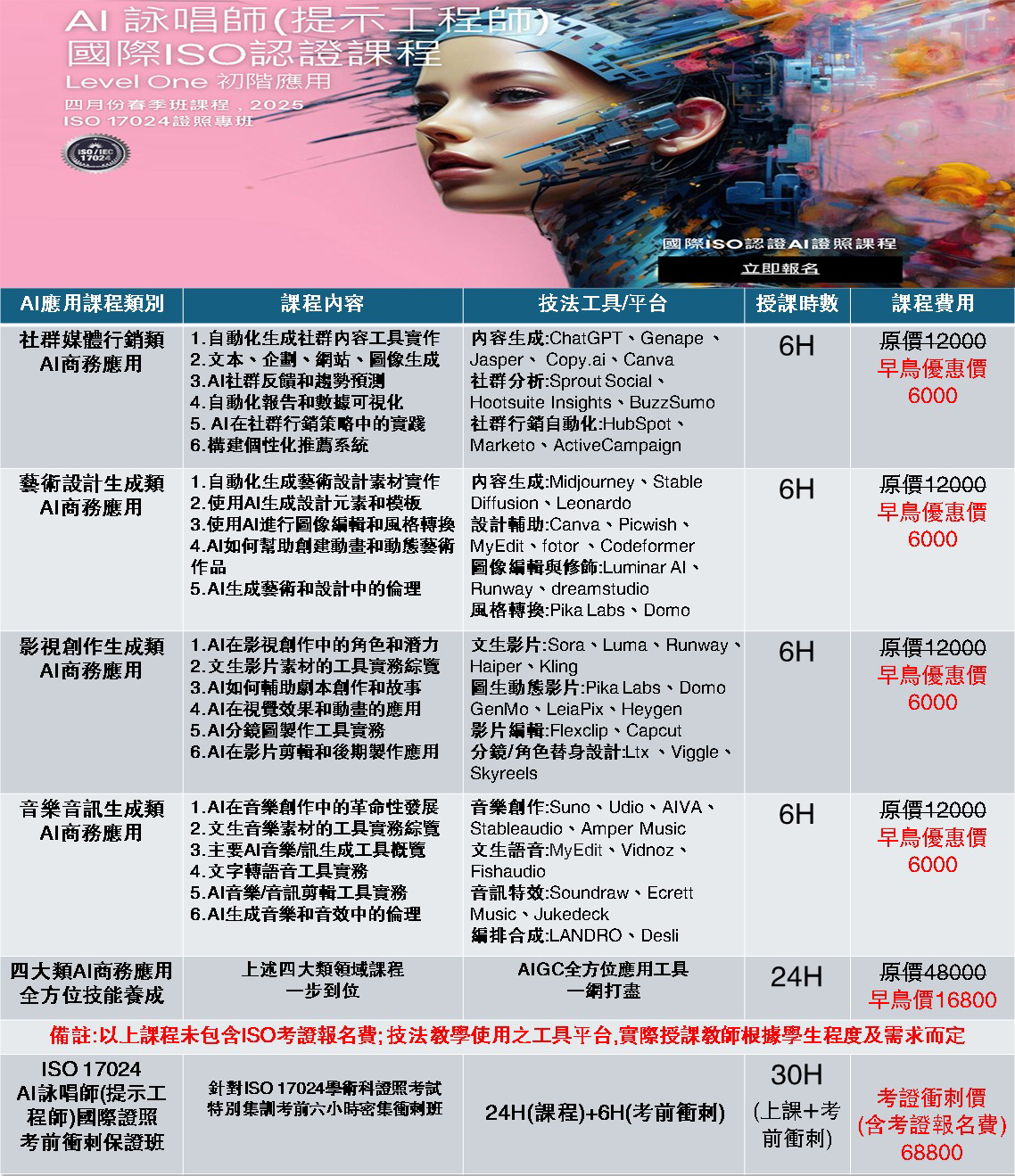 AI詠唱師(提示工程師)國際ISO初階應用四月份春季班認證課程