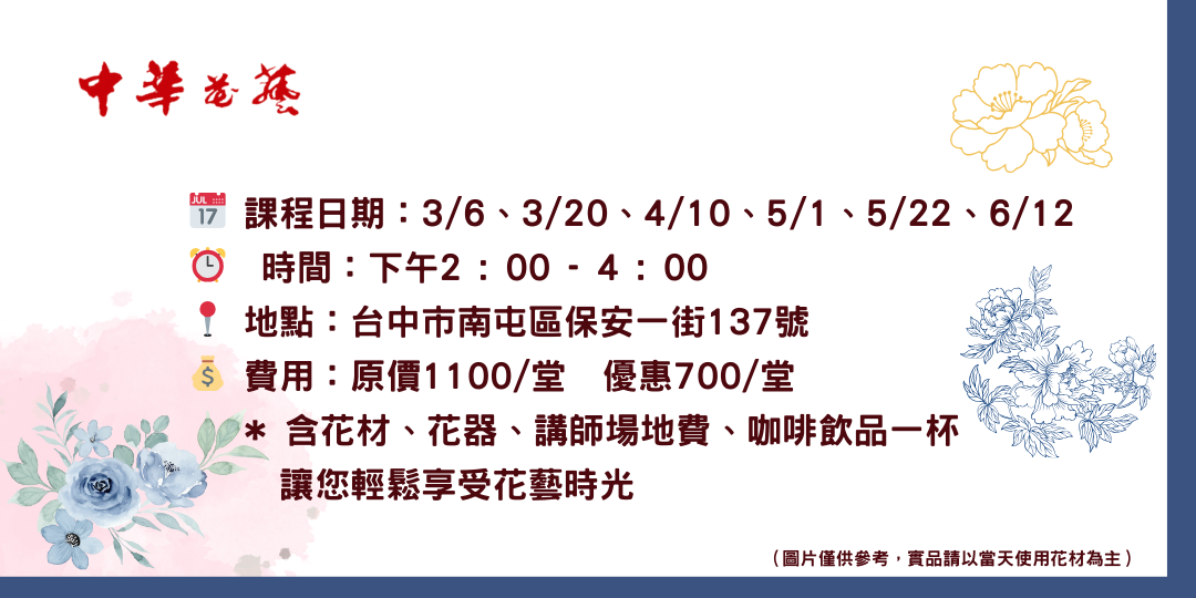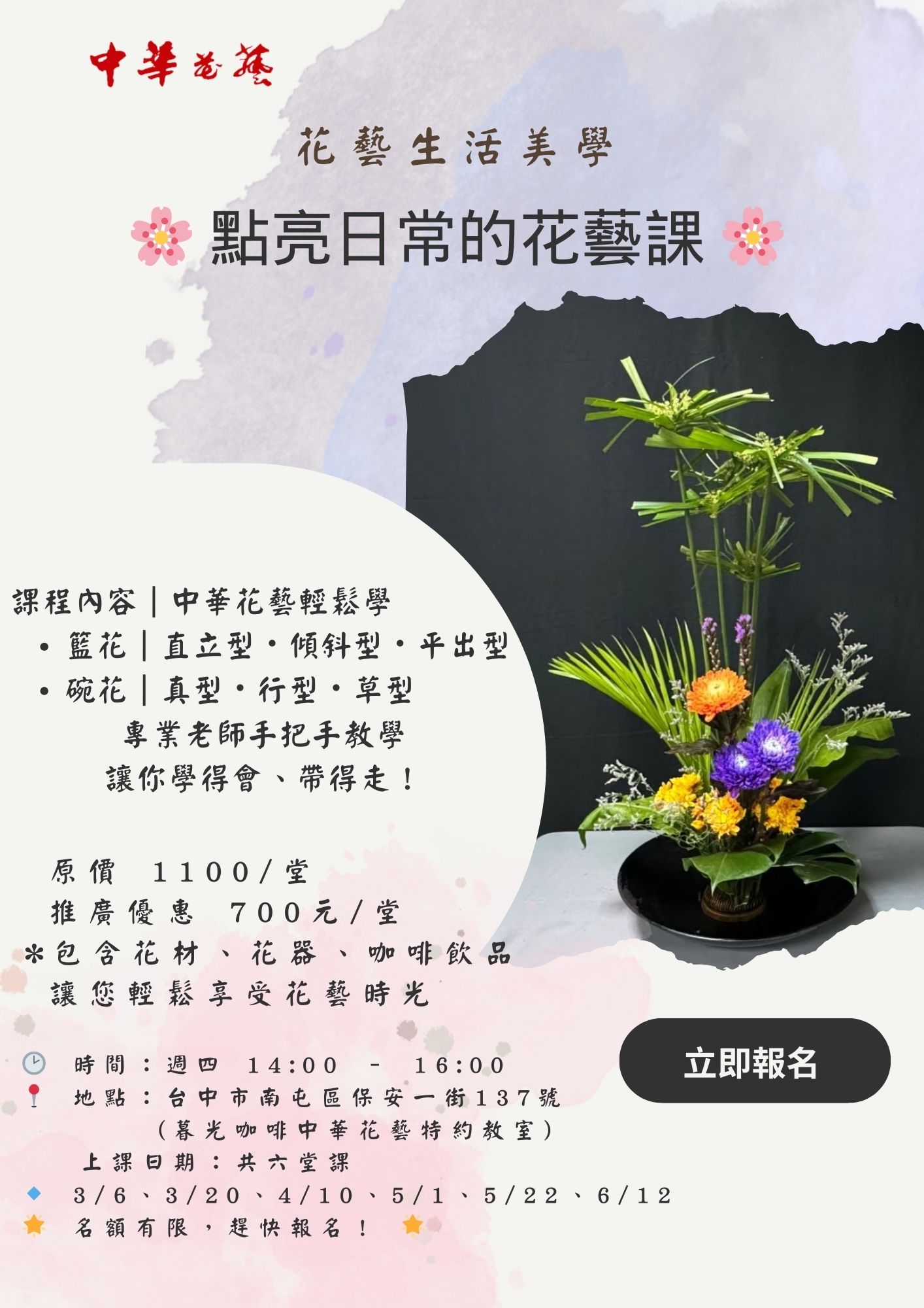 (含花材材料費、講師費、場地費,另贈咖啡飲品一杯)