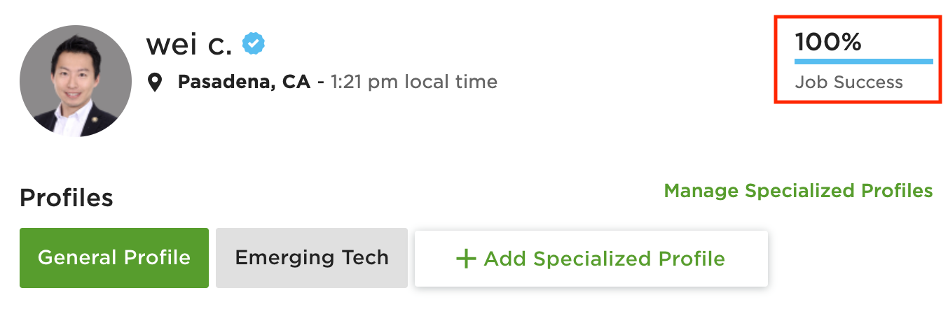 📌 UPWORK 帳號評價 JOB SCORE 100 分的證明