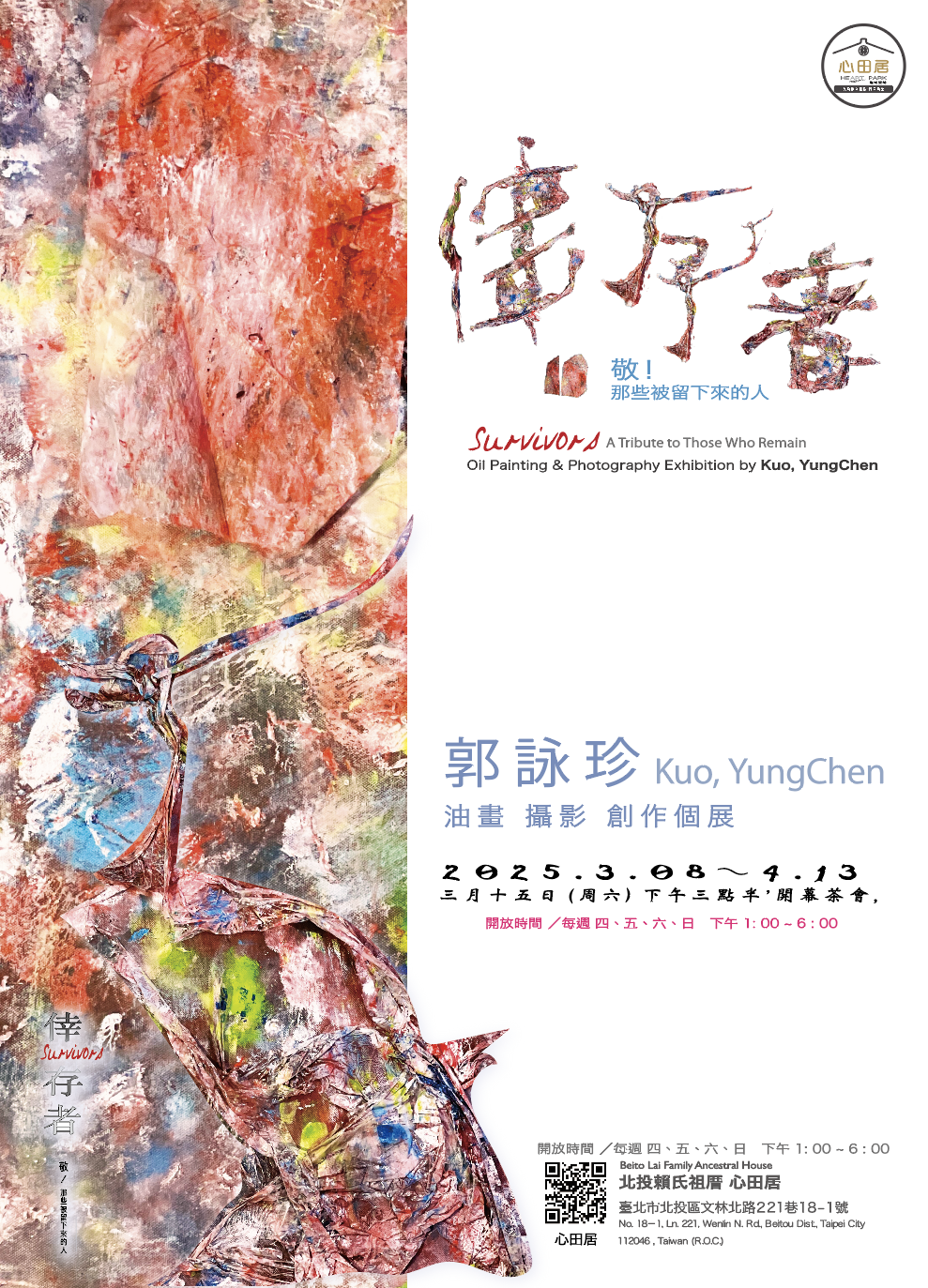 這場展覽將呈現近年來在油畫與攝影領域的創作旅程,從防衛的假我到真我的醒覺,從情感的裂縫到愛的重生。