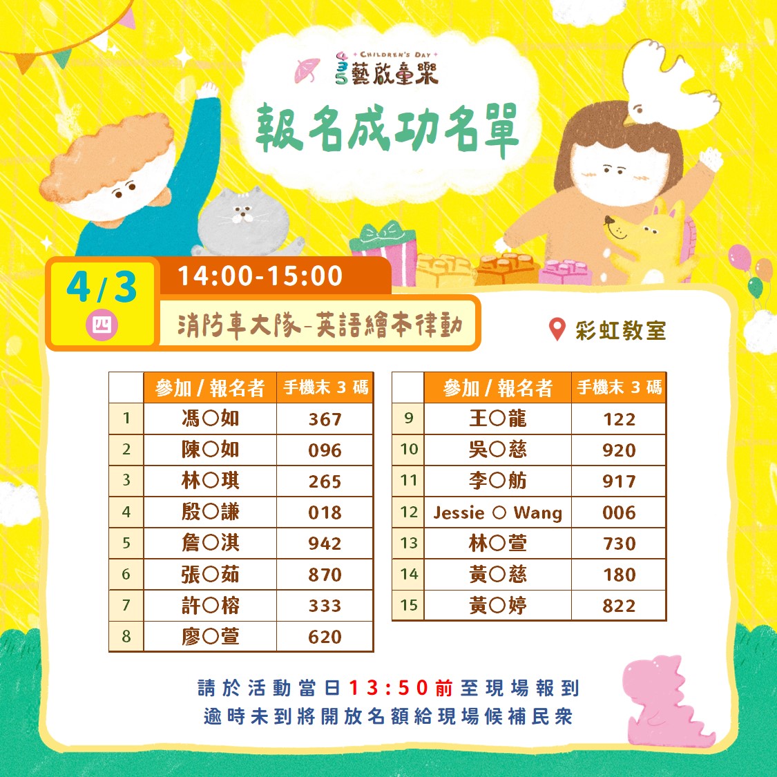✦ 報到時間:請於13:50 至現場報到,憑報名者/小朋友姓名或出示報名成功信件完成報到。