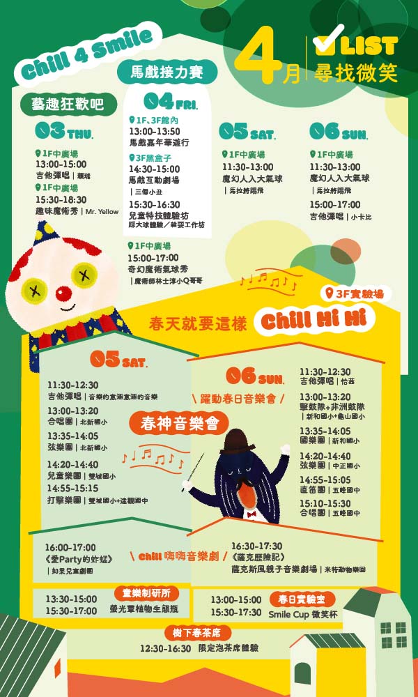 ▌活動時間:4.05(六)-4.06 (日) 12:30-13:30 / 14:00-15:00 / 15:30-16:30