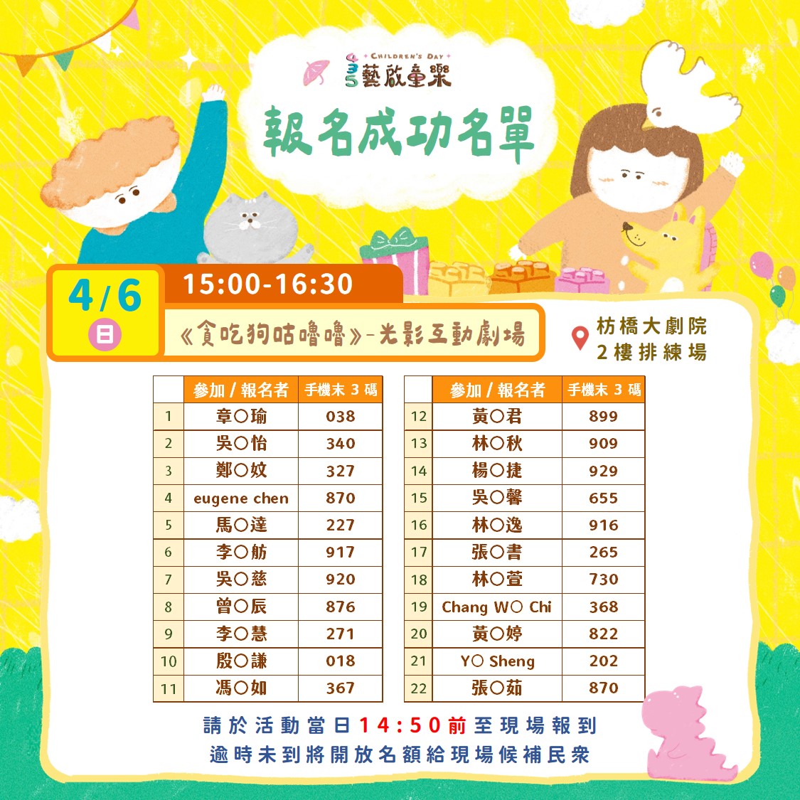 ✦ 報到時間:請於14:50 前至現場報到,憑報名者/小朋友姓名或出示報名成功信件完成報到。