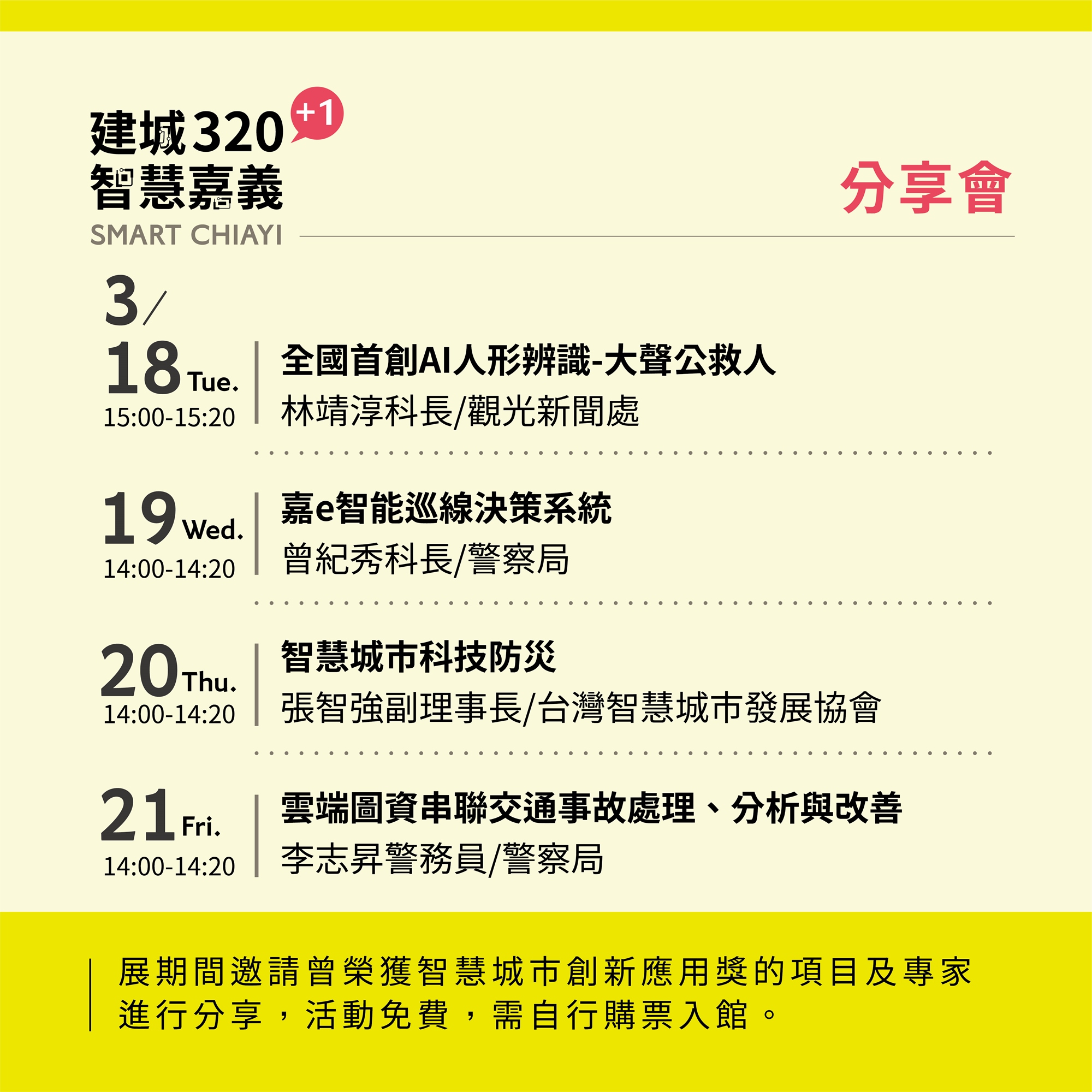 「建城320+1 智慧嘉義」將在 03/18-03/21 在南港展覽館2館1樓展出囉!