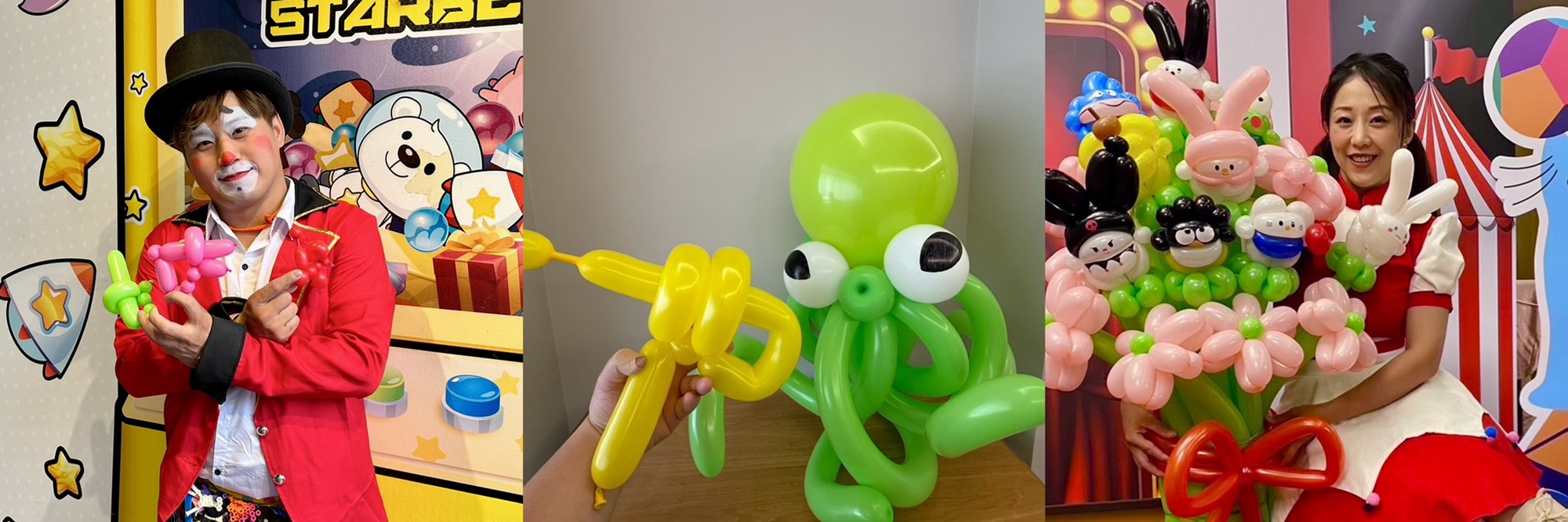 活動由世界小丑大賽雙金得主、美國夢工廠表演者等馬戲精英組成的「樂思劇團」針對金葉小怪獸設計Q版氣球。邀請大小朋友們動動手,一起DIY摺出可愛造型氣球,度過歡樂連假時光 ♡