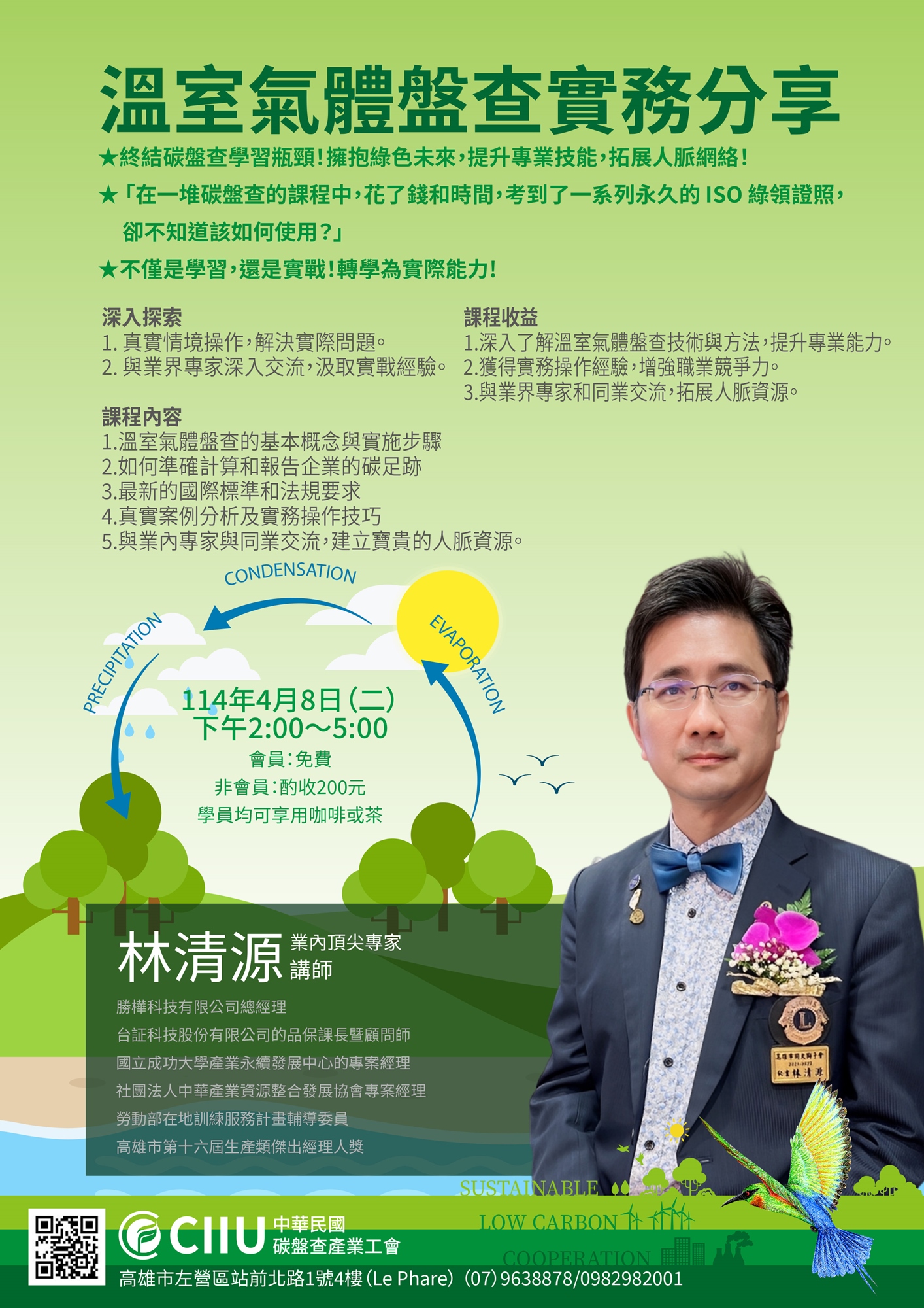上課地點 :中華民國碳盤查產業工會( 高雄市左營區站前北路1號4樓/Lephare共享空間)