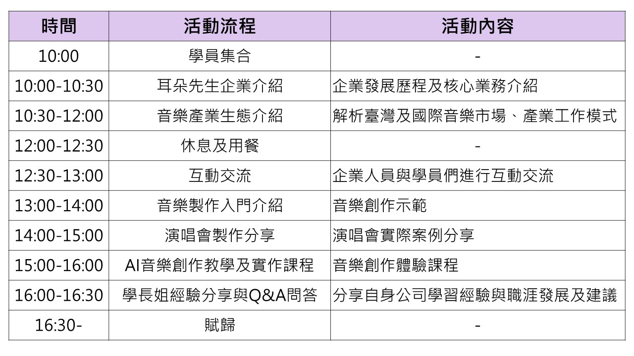 - 活動皆全程免費,並提供餐食、保險及接駁。