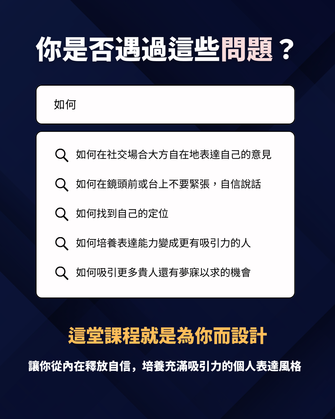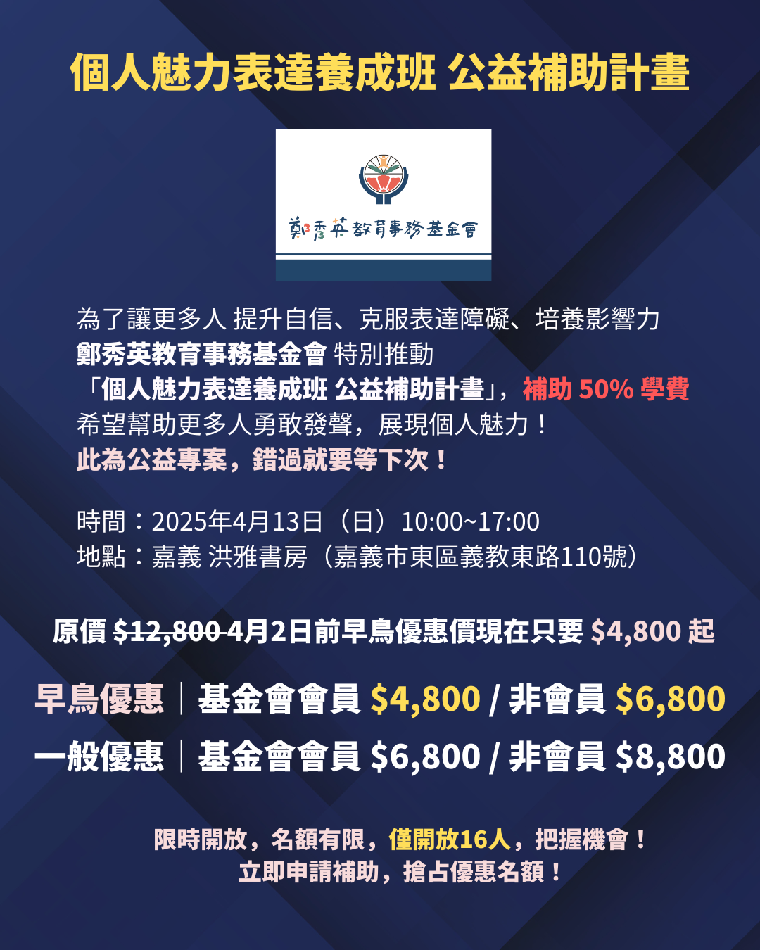 個人魅力表達養成班(一天實體+2次1對1諮詢)