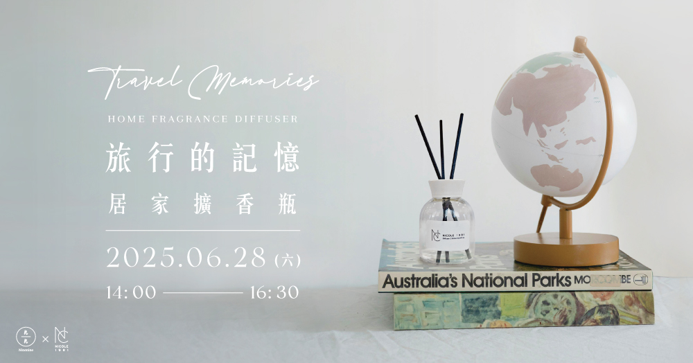 ※完成報名後,請務必加入久號官方LINE帳號@ninenine,加入後請發送貼圖告知我們報名姓名並告知我們想要調配的旅行擴香地點,我們將於課程開始前一天10點於久號官方LINE上寄發連結給學員。
