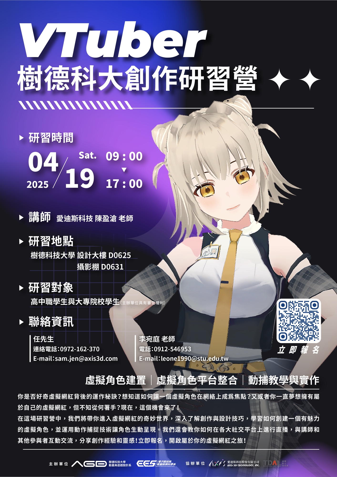 參加本次研習營,不但能熟悉虛擬角色的關鍵製作流程,還能創造屬於自己的虛擬偶像角色,立即參賽【2025虛擬網紅創作設計大賽 - 我是最佳代言人】,對於未來有志朝虛擬網紅或VTuber的你勢必不能錯過!!!