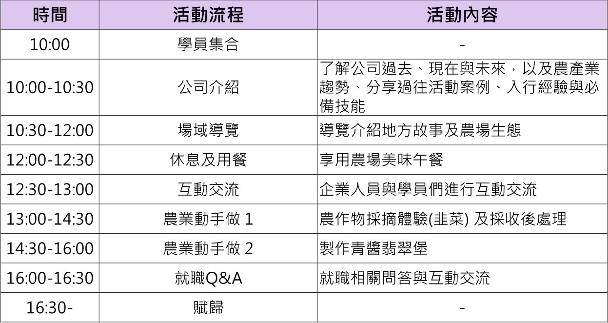 - 活動皆全程免費,並提供餐食、保險及接駁。