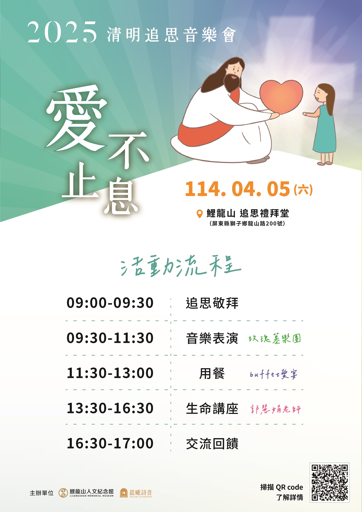 ☉ 地點:鯉龍山-追思禮拜堂(屏東縣獅子鄉楓林村龍山路200號)